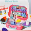 – Your first food truck: electric toy kitchen in a suitcase with wheels and accessories included, the briefcase has wheels and serves as storage for all accessories, you can take it everywhere!